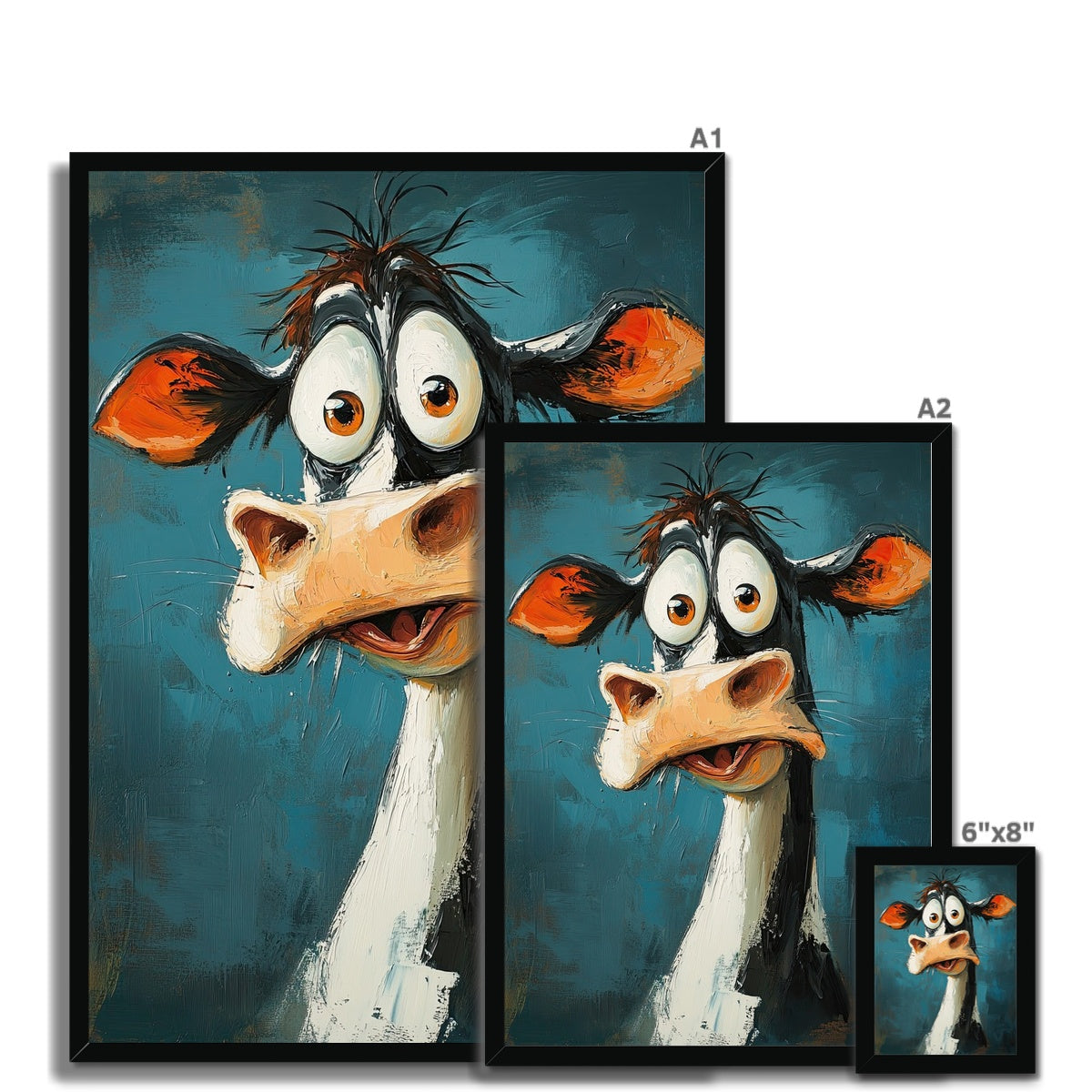"Bovine Surprise" expressionist art print in oil Framed Print