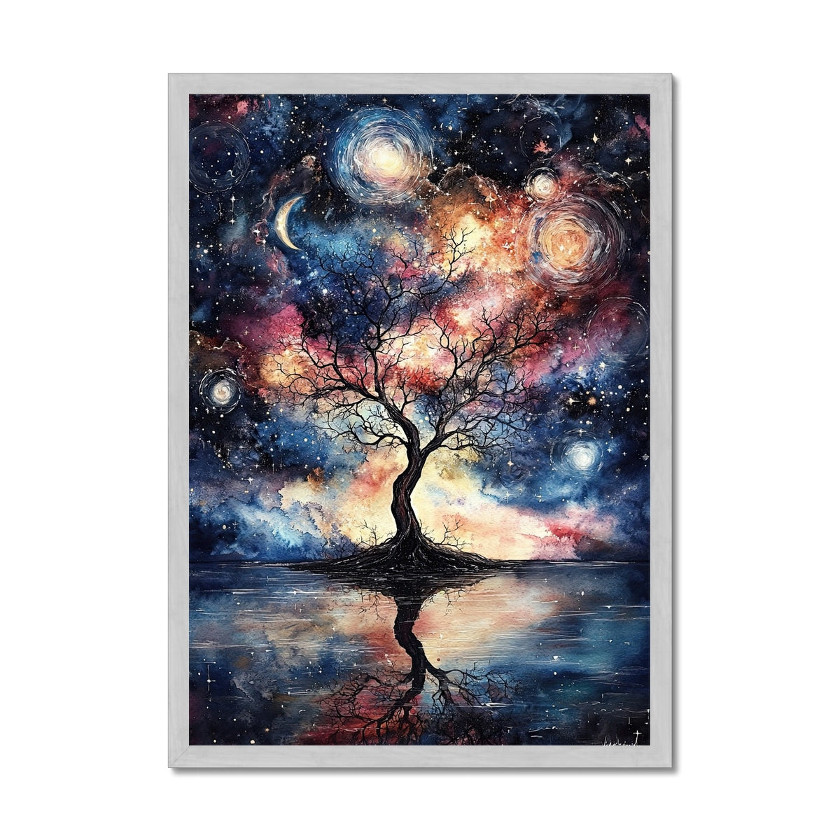 "Cosmic Reflection" fantasy art print in watercolor Antique Framed Print