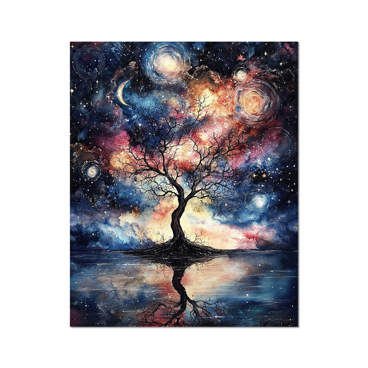 "Cosmic Reflection" fantasy art print in watercolor Wall Art Poster