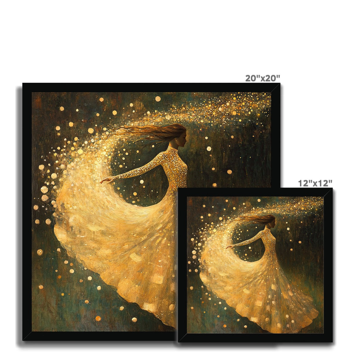 "Stardust Motion" impressionist art print in oil and gold leaf in the style of Alphonse Mucha Framed Print