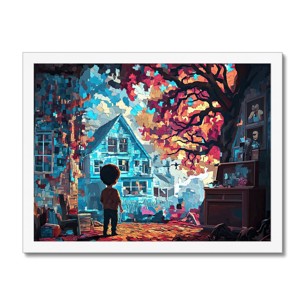 "The House of Lost Time" dark mosaic art print in mixed media Framed Print
