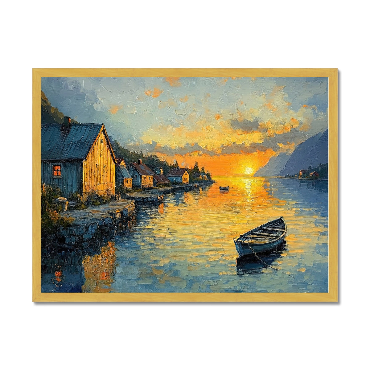 "Harbor at Sunset" impressionist art print in oil Antique Framed Print