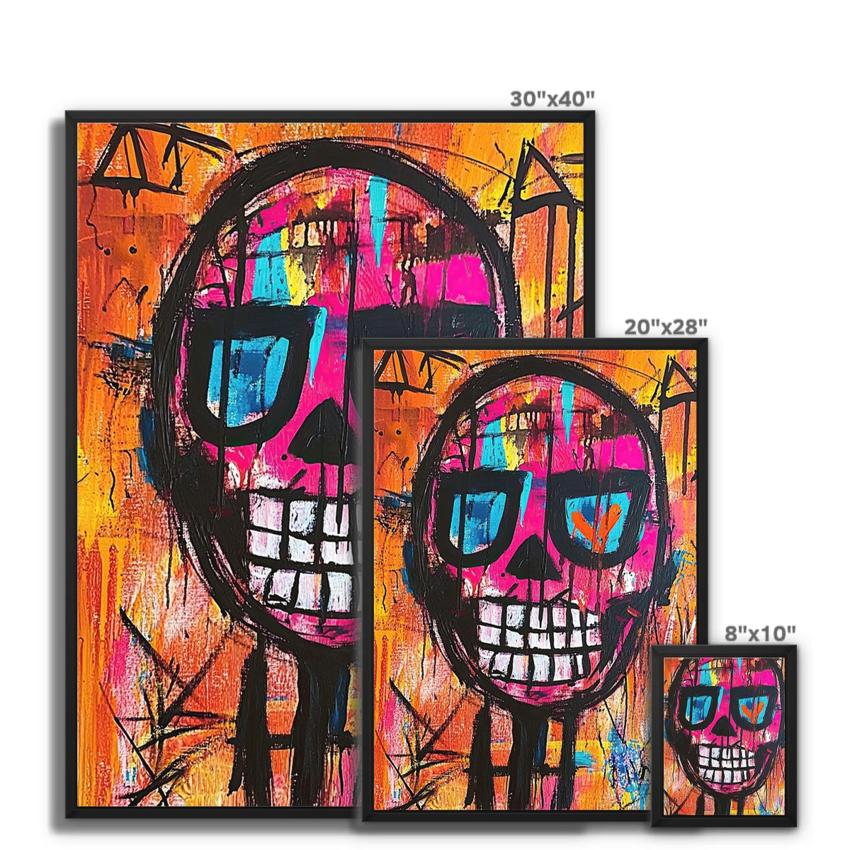 "Neon Skull" neo-expressionist art print in acrylic Framed Canvas