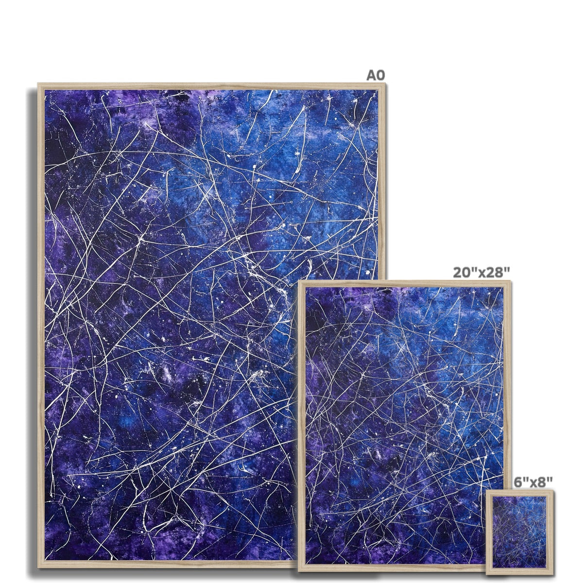 "Celestial Threads" abstract art print in acrylic in the style of Jackson Pollock Framed Print
