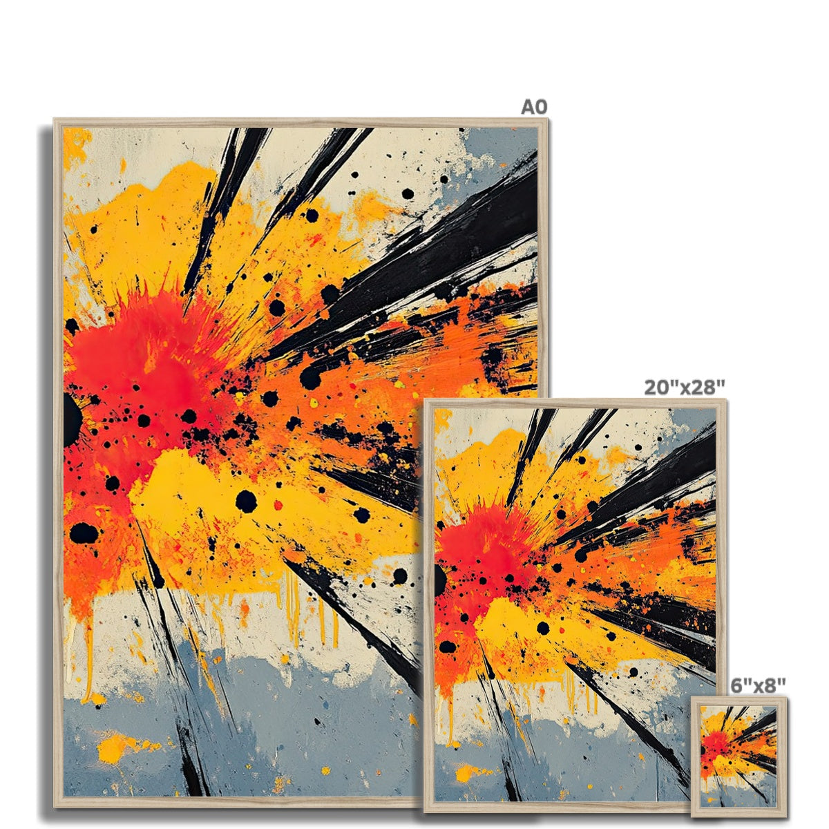 "Supernova Impact" abstract art print in acrylic in the style of Jackson Pollock Framed Print