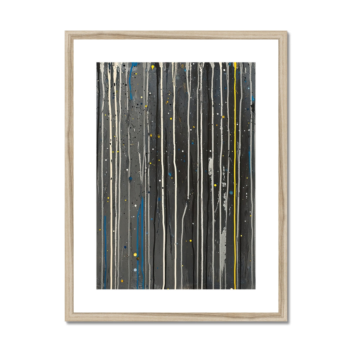 "Melancholy Drizzle" abstract art print in oil in the style of Jackson Pollock Framed & Mounted Print